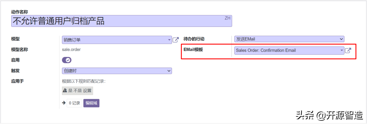 应用于:自定义一个过滤条件,只针对符合此条件的记录,执行自动动作