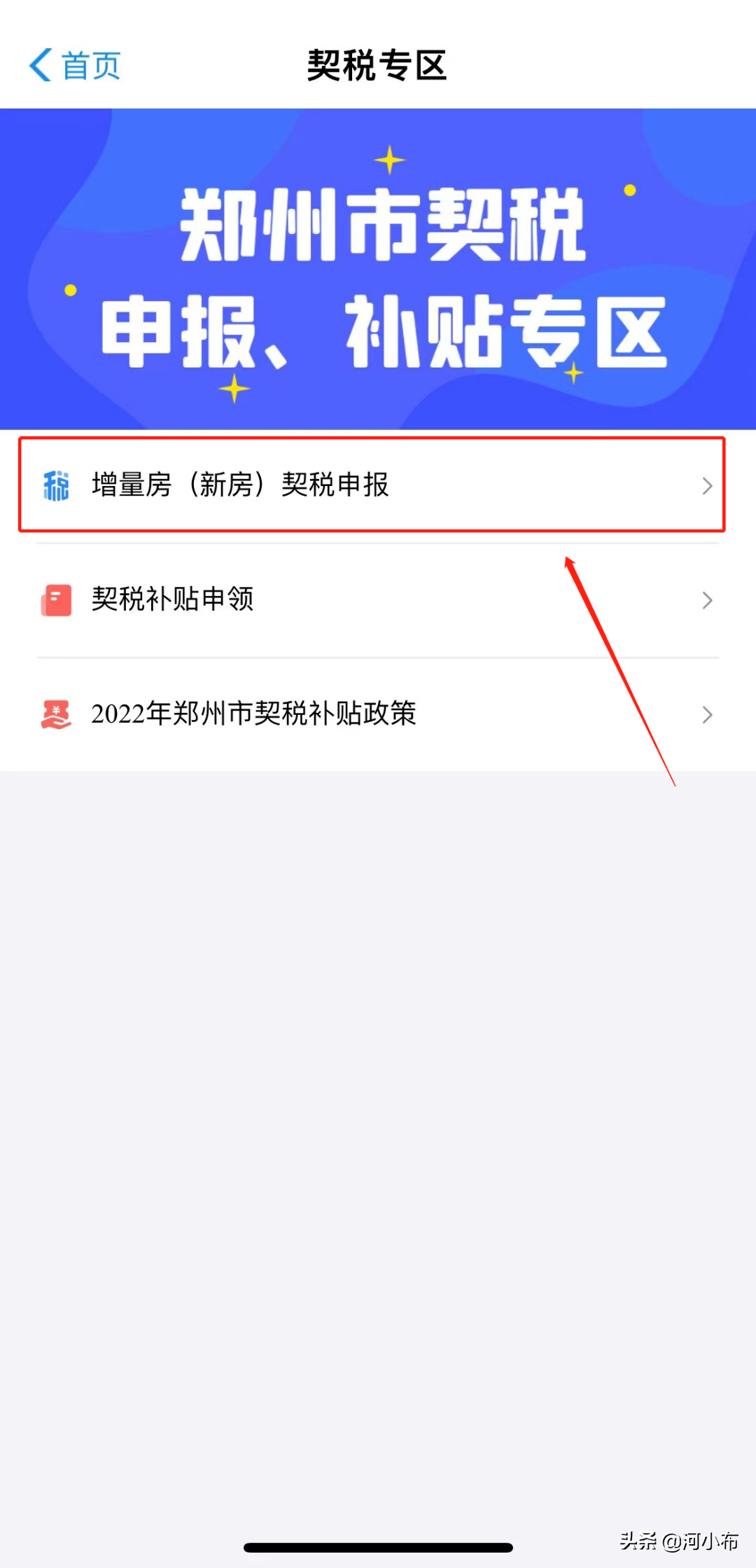 具体步骤:进入“郑好办”APP,首页找到“契税专区”按钮并点击进入。选择“增量房(新房)契税申报”按钮,缴纳契税。