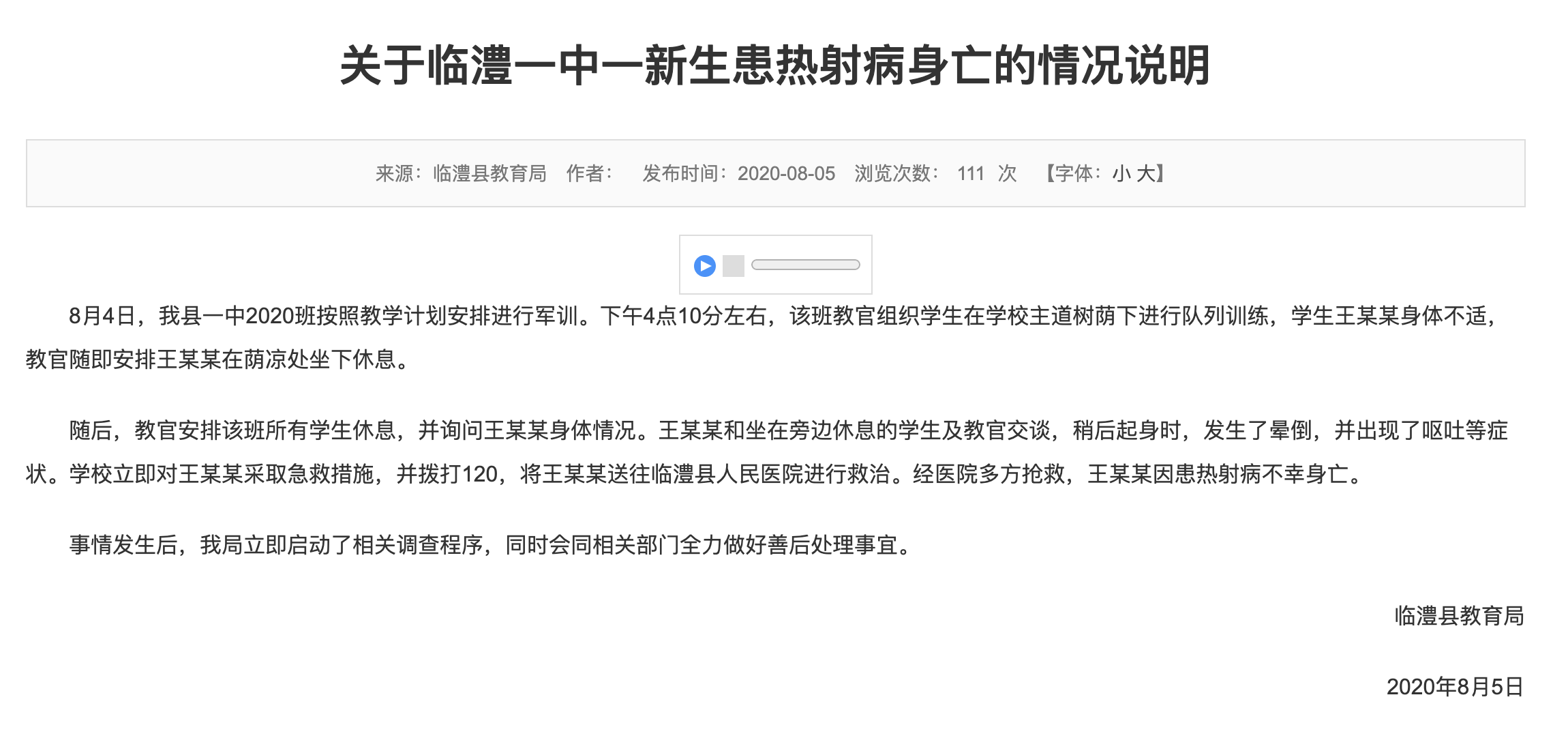 当初看到这则消息时是震惊,再一次看是心痛。一场无情的军训,夺走了少年最珍贵的梦和生命,让人痛惜不已。