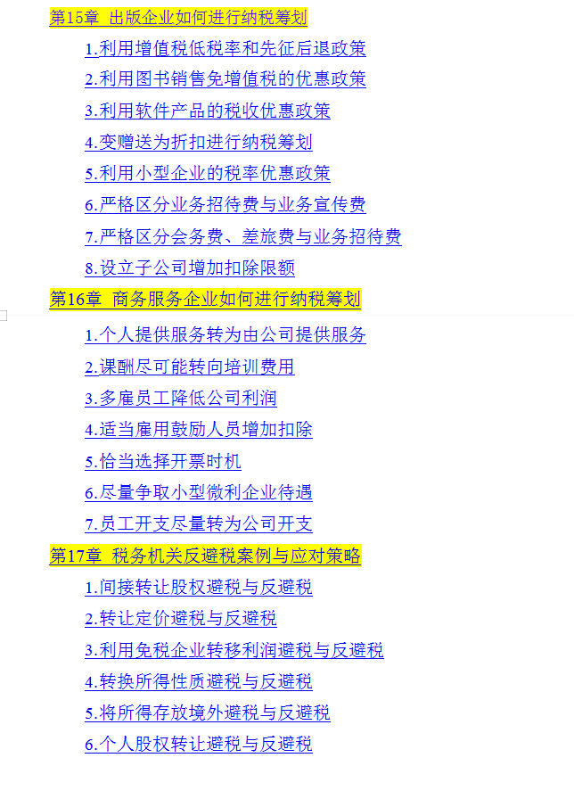 税务筹划是企业都比较重视的工作!事关企业每年要交多少税,所以,在企业经营过程中,纳税筹划是要做的重点工作!我们日常财务工作主要的涉税事项是有很多的,增值税、企业所得税、个人所得税以及其他税种等。很多财务想要通过税务筹划来提升一下自己,也好让自己得到一个晋升的机会,但是同时又发现税筹比较难处理!今天在这里带来了:财务经理总结的180个企业税收筹划案例分析,共有17个章节,内容详细,后附有案例分析筹划过程,希望帮助大家理解税筹的方法。下面是详细的内容,一起看看吧。