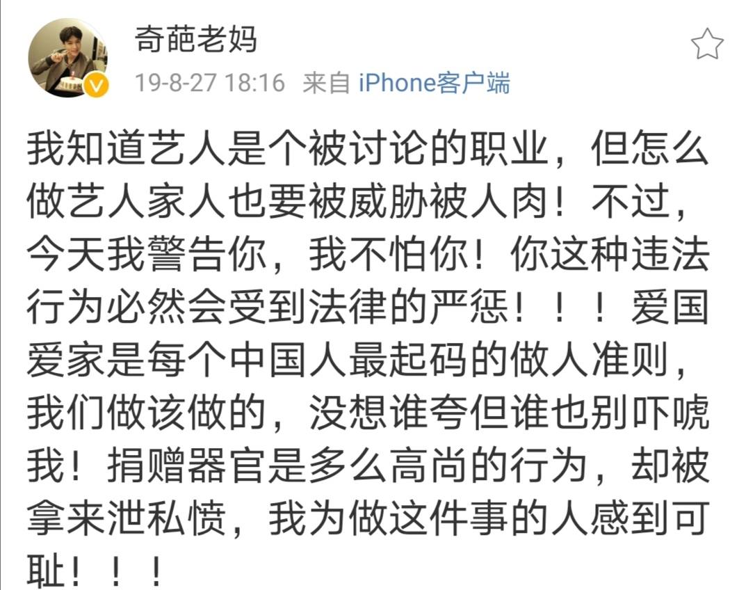 并被扒出许多的隐私在公共平台传播,甚至有人将张艺兴的信息填写到器官捐赠上,并将器官捐赠的证书送到了张艺兴母亲的手中。