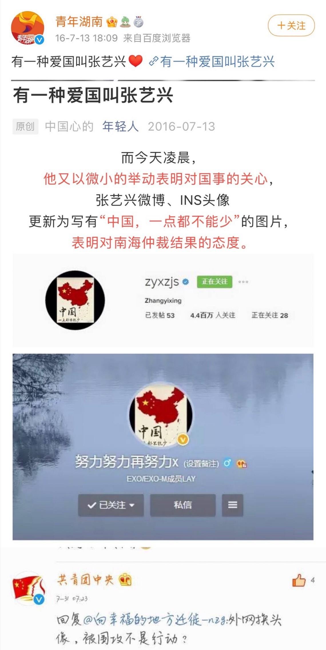 而央视和各个平台也同样给予了对张艺兴爱国的肯定。