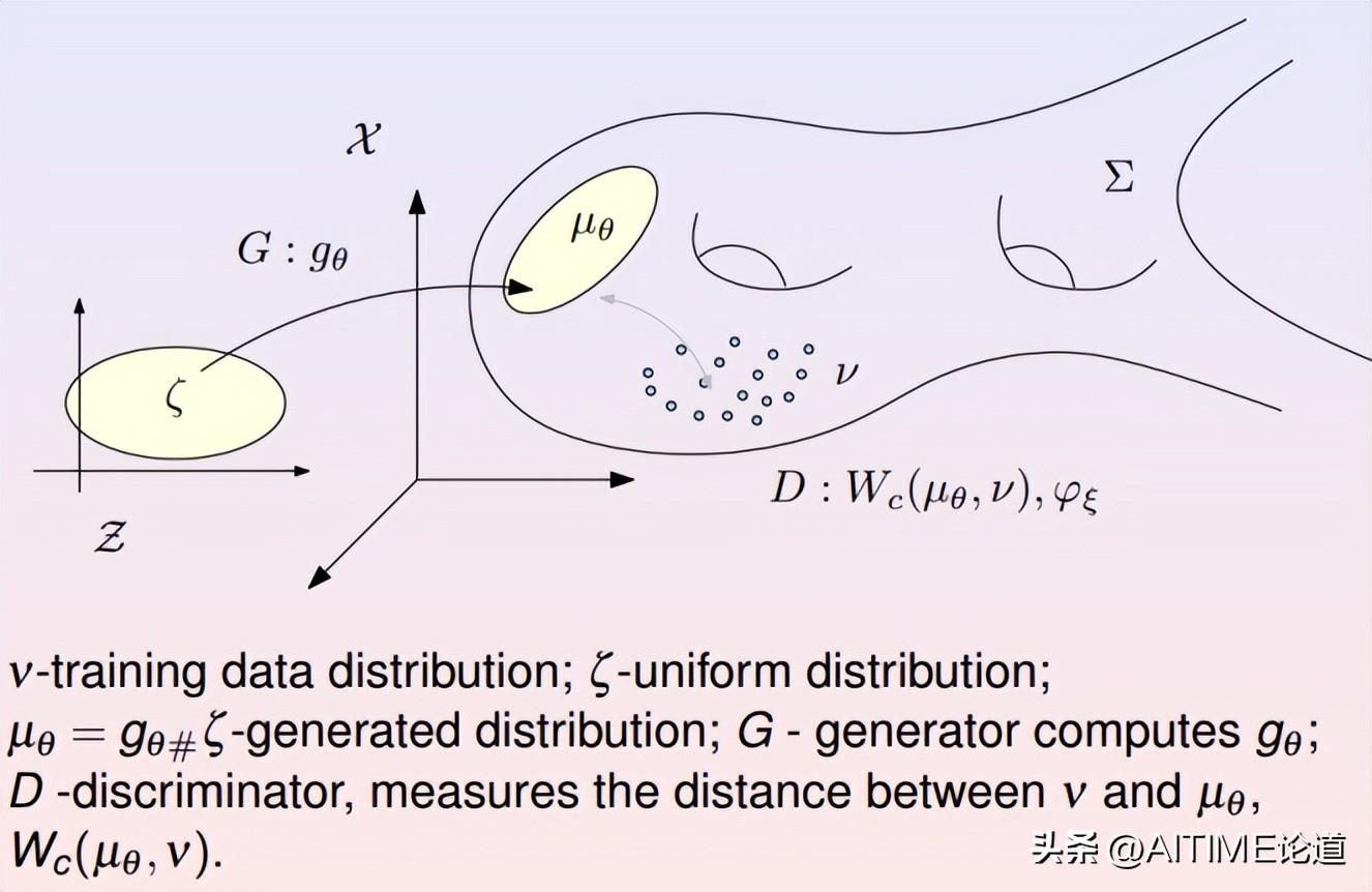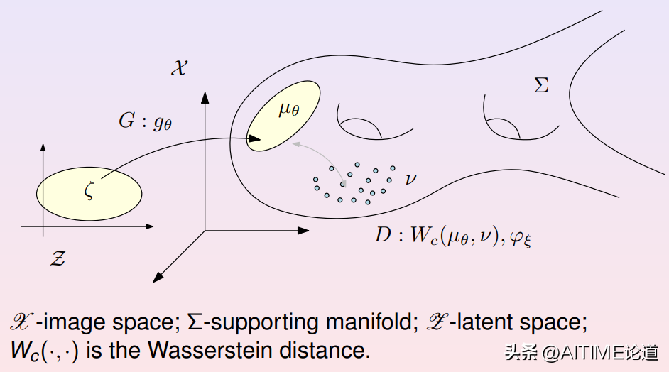 (3)数据流形拓扑结构的学习主要是用万有逼近定理,将流形映射到特征空间(隐空间);概率分布的学习实际是应用最优传输理论。最优传输理论为Wasserstein空间赋予了黎曼度量和协变微分,为在所有概率测度构成的空间中优化提供了理论框架。