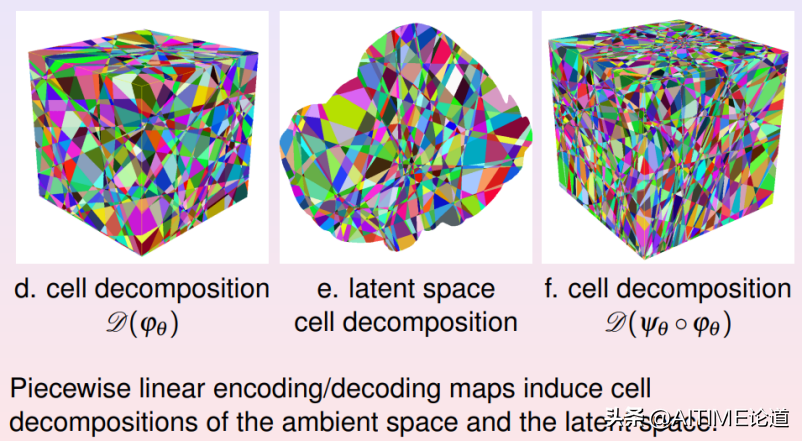 这里我们显示输入、输出空间和隐空间的胞腔分解,编码映射和解码映射在相应的胞腔间是线性映射,因而整体是分片线性映射。