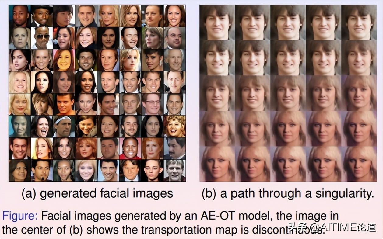 如果最优传输变换存在奇异集合,那么某条线段可能会和奇异集合产生交点,这些交点被映射成人脸图像流形的边界。我们会在边界处看到这样的人脸图像,它们即在生理学上是合理的,但是在现实中碰到的概率为零。