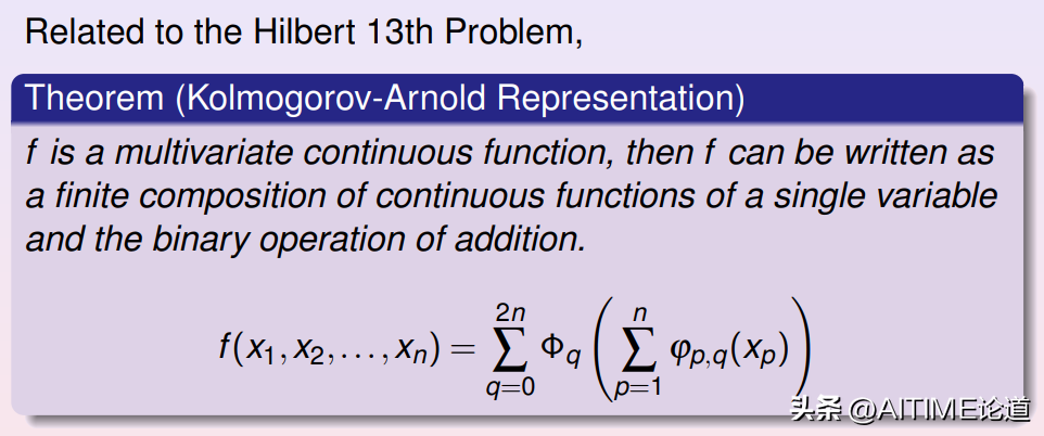 深度神经网络具有万有逼近的性质,即只要给定一个连续映射,给定任意的逼近精度,都存在某个深度神经网络来进行逼近。这个性质的理论基础实际上是来自Hilbert 第13问题:任意一个多变元的连续函数,都可以由两个单变元函的有限复合以任意精度来逼近。我们可以看到深度学习的逼近理论大多是基于这个定理。