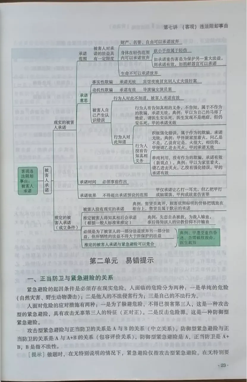 今年徐老师的书有204页,1-189页是三十二个专题的知识点总结,190-200页是多种观点考点和真题梳理,201-204也是法律拟制和注意规定的总结。对于第二、三部分,想把刑法学好,是可以好好研读的,第二部分的观点展示考点对主观题也有帮助,不过对于复习客观题来说,去看的必要性不大,因为对于分数的提升不会很多。