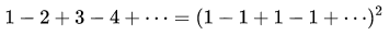 1-2+3-4+···=(1 - 1 + 1 - 1 +···) ^2