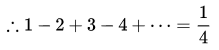 1 - 2 + 3 - 4 +····=(1 - 1 + 1 - 1 +···) ^2=1/(1+1)^2=1/4