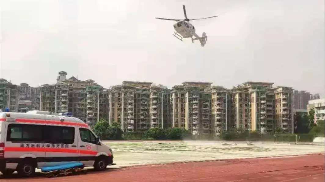 广州医院的降落地点很快选定,就在医院旁边的一个大操场,但珠海中大五院附近不具备起飞场条件。保险公司和交警部门协商先用救护车将人送至位于吉大的直升飞机场,然后直飞广州。