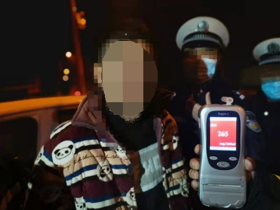 1月24日21时27分,付某酒后驾车被漯河交警示范区大队执勤民警当场查获。经酒精测试仪测试,结果为:265mg/100ml,付某达到醉酒驾驶机动车标准,涉嫌危险驾驶罪。示范区大队执勤民警依法将付某带至医院抽血待检,目前,案件正在进一步处理中。