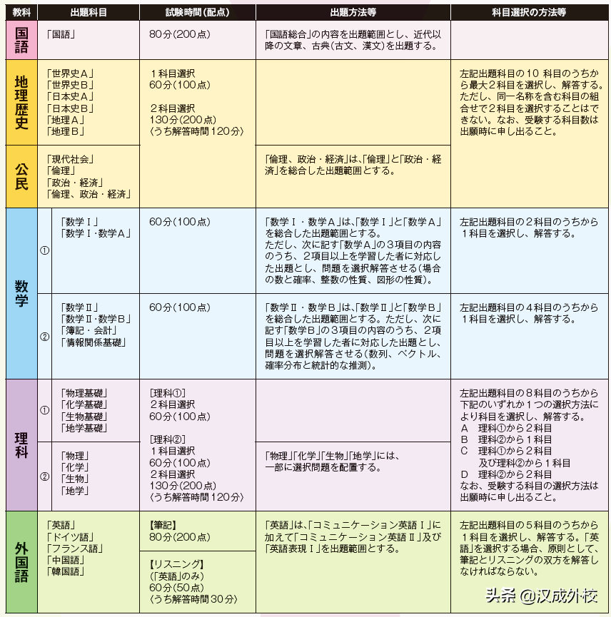 日本高考:一年一次,2021年度实施日期是2021年1月16日、17日。(针对受疫情影响的考生,有补考)