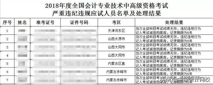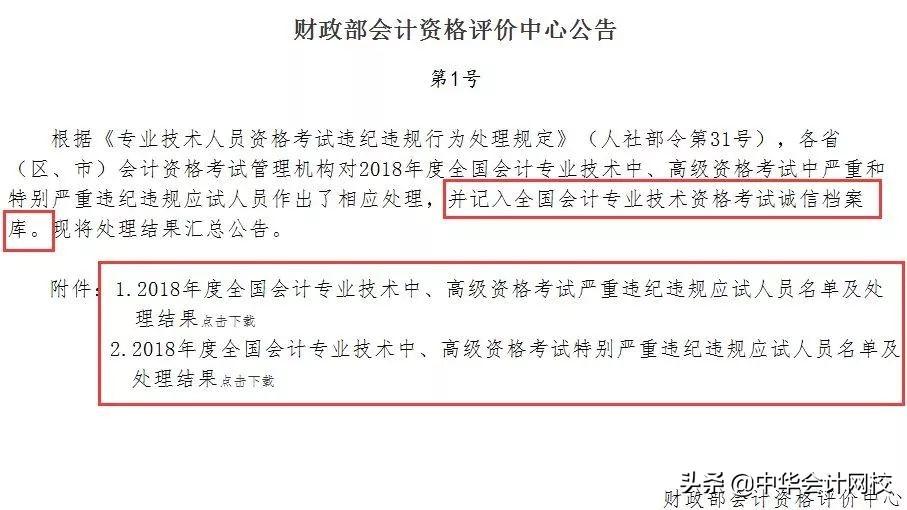 严重!2018年度全国中级会计职称考试严重和特别严重违纪违规人员处理结果公布!涉及的应试人员中级考试成绩作废,违规违纪行为被记入全国会计专业技术资格考试诚信档案库!严重违规违纪的,记录期限为5年,特别严重的,长期记录。