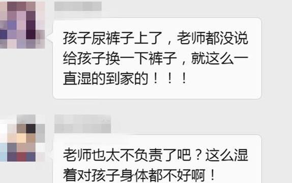 “你们幼儿园那么多老师就没看见我儿子裤子湿了吗?你们幼儿园的老师也太不负责任了,孩子就这么湿着多难受啊,对身体多不好,你们就这样当老师怎么放心把孩子交给你们......”家长们在群里看到这个消息,炸开了锅,纷纷指责幼儿园的不负责任。