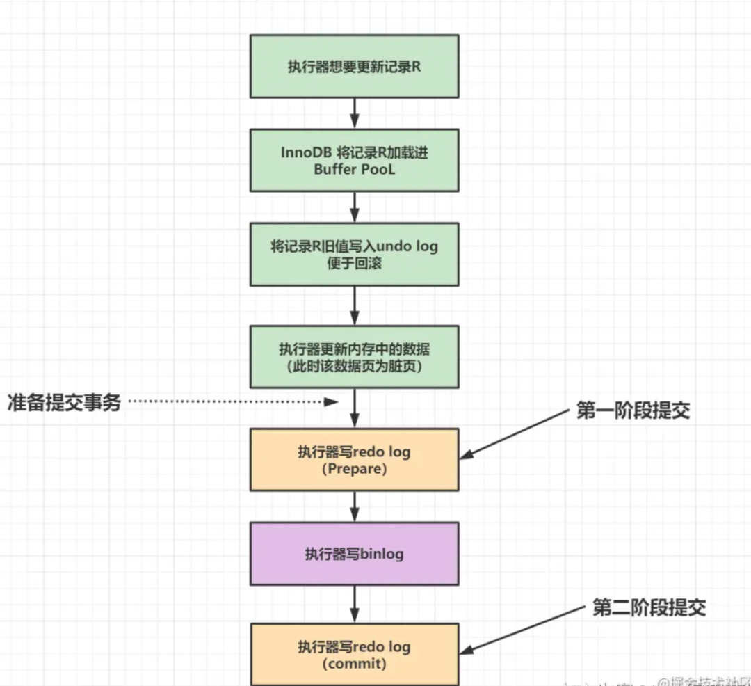 MySQL 将 redo log 的写入拆成了两个步骤:prepare 和 commit,中间再穿插写入binlog,这就是"两阶段提交"。