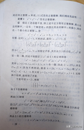 17世纪初,欧洲流传着公元三世纪古希腊数学家丢番图所写的《算术》一书。大约在1637年前后,法国数学家费马在丢番图的《算术》的第二卷关于毕达哥拉斯三元组的页边上,写下了一段结论“不可能将一个立方数写成两个立方数的和;或者将一个4次幂写成两个4次幂之和;或者,更一般的说,不可能将一个高于2次的幂写成两个同次幂的和”。接着,他又俏皮地写下一个附加的评注:“我对此命题有一个十分美妙的证明,只是这里空白太小,写不下”。上述评注是费马死后5年的1670年发表的。人们称上述问题为“费马大定理”。简单说,费马大定理就是n≥3时,下面不定方程没有正整数解。