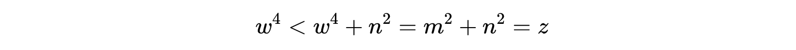 这个过程的重复将会给我们无穷多个解,并且每个解都有一个新的w小于前一个w。因此,使用无限下降的方法我们得出了证明。