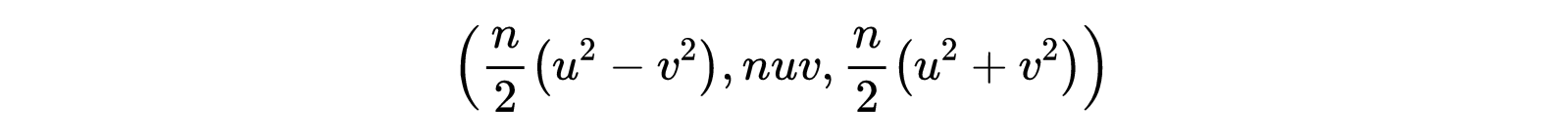 其中u和v是奇数,N是自然数的集合。注意,x和y是可以交换的。因为,如果(x, y, z)是一个解,那么(y, x, z)也是。