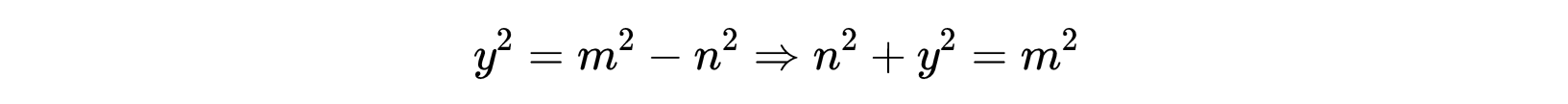 现在请注意,三元组(n, y, m)是互质的勾股数,因为: