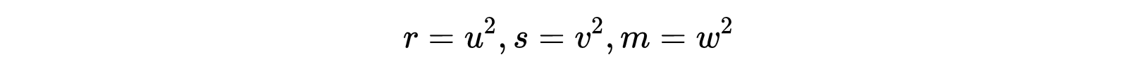 如果没有公因式,每个公因式都是一个平方数,我们称之为u^2和v^2。因此: