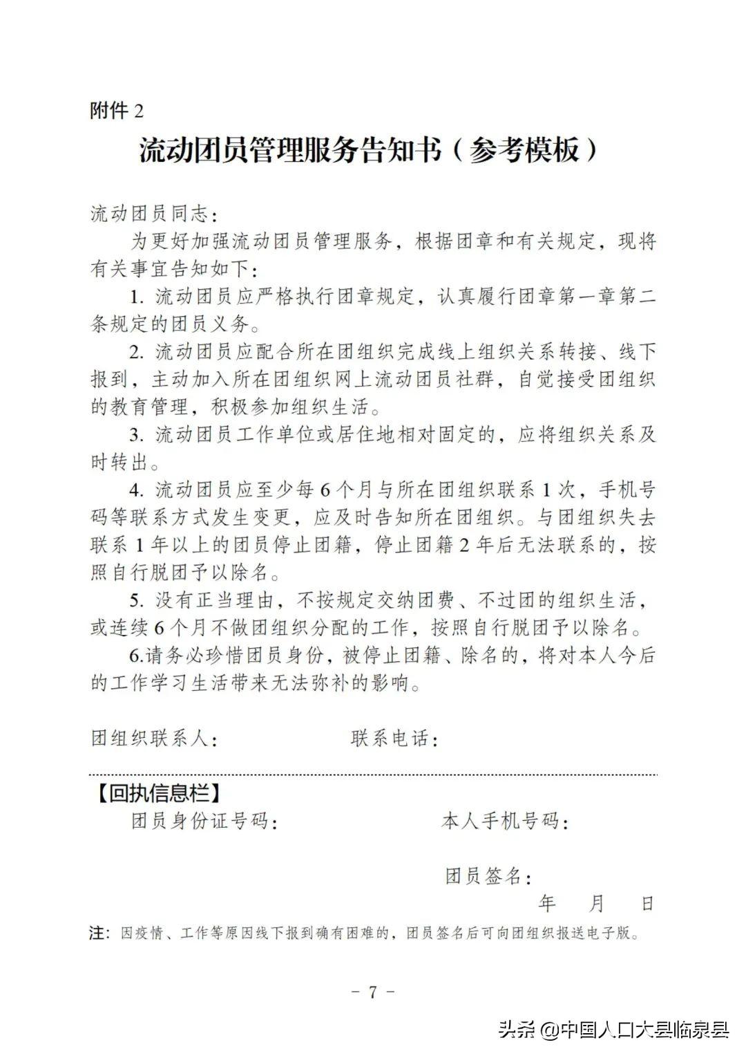 答:为防止团员“在网失联”,团组织可根据需要要求流动团员填写《流动团员管理服务告知书》并签字确认,强化团员身份意识、告知流动团员义务责任。比如,转入乡镇(街道)、村(社区)团组织但本人并不在当地的流动团员;毕业后组织关系仍保留在学校的流动团员等。因疫情、工作等原因线下报到确有困难的,团员签名后可向团组织报送电子版。
