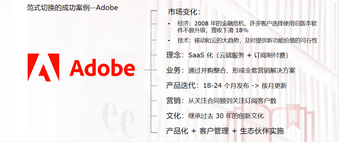 (3)Adobe:产品化+客户管理+生态伙伴实施三管齐下