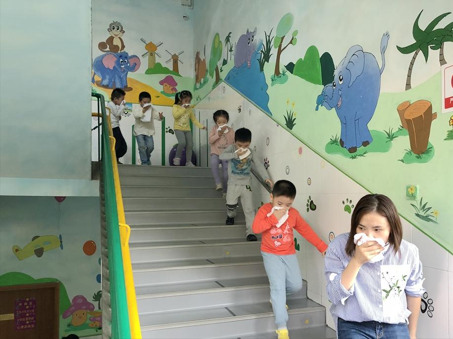 下楼梯时也是排队有序,不推不挤。足以见得,幼儿园平时的消防安全演练一定不是走形式,也不是走过场。