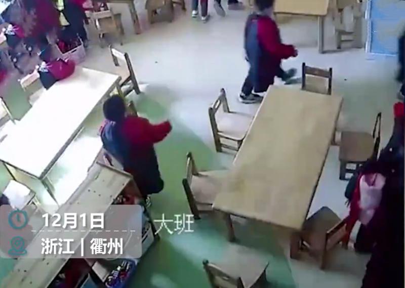 在撤离过程中,从监控视频看到,孩子们也不忘捂住口鼻,以免吸入有害气体。