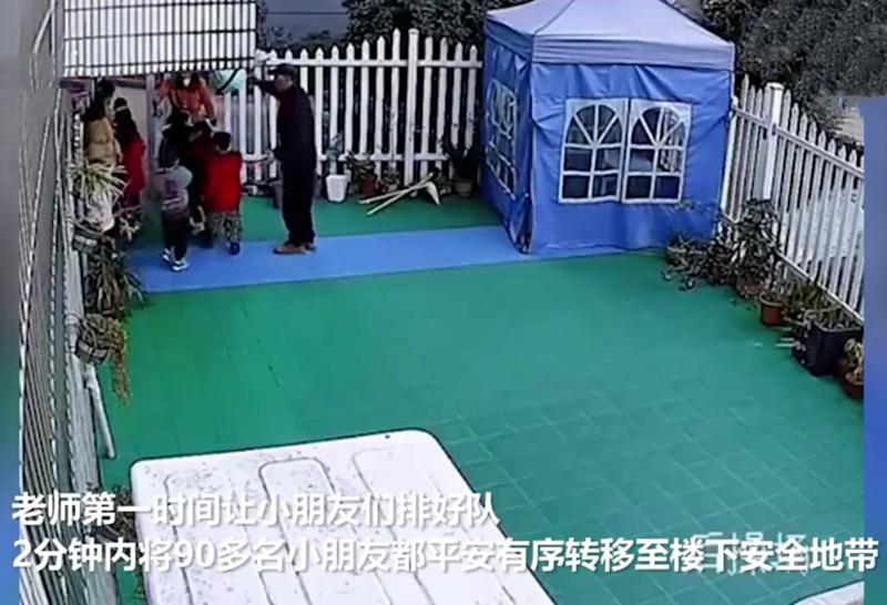这个幼儿园的确不大,人数不多,但是全园幼儿园90多名,在两分钟内就全部安全转移。