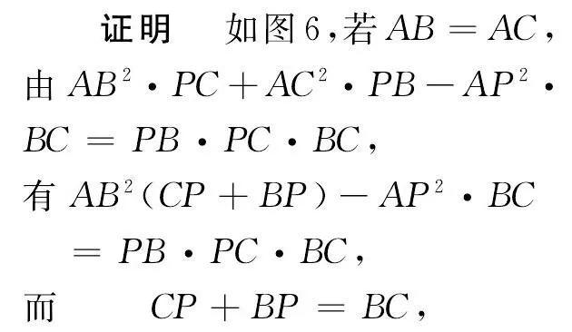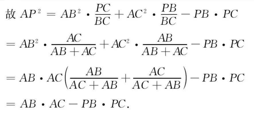 AB²·PC+AC²·PB-AP²·BC=PB·PC·BC.