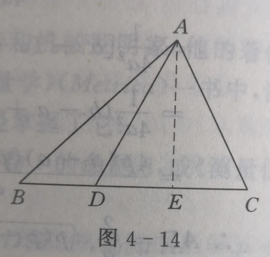 如图4-14,作AE⊥BC,设C、D在E的两侧,则∠ADC是锐角,∠ADB是钝角。