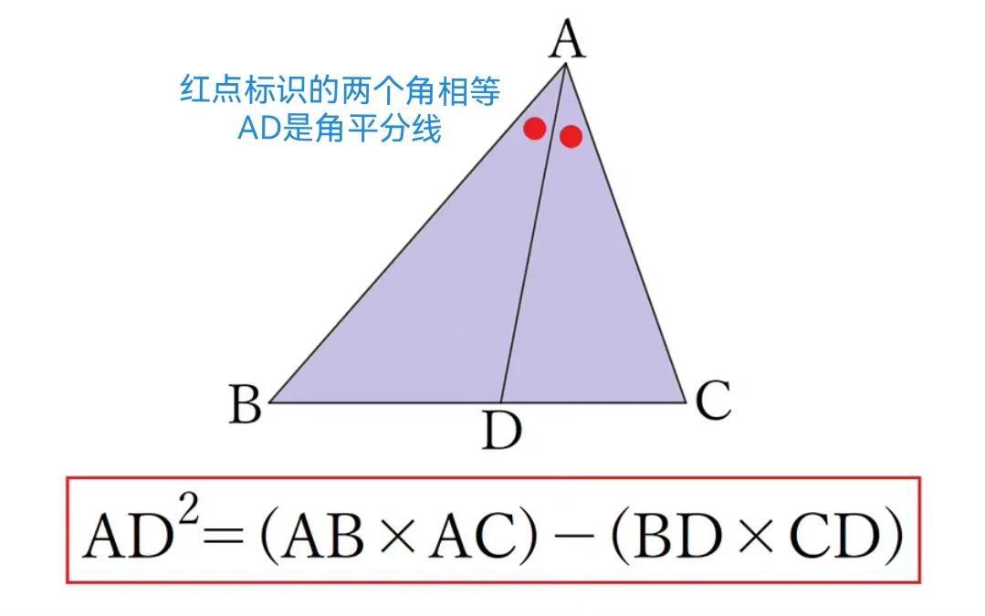 需要指出的是, 由上述过程可以推出三角形角平分线长的计算公式: