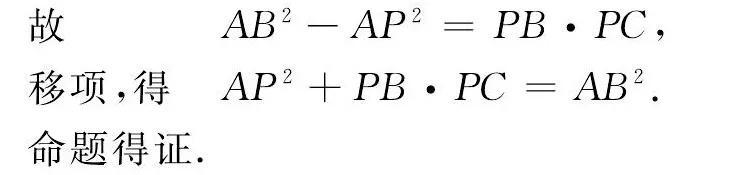 结论1等腰三角形底边上任意一点到顶点的距离的平方与到底边两端点距离的乘积之和等于腰长的平方 (定值) .