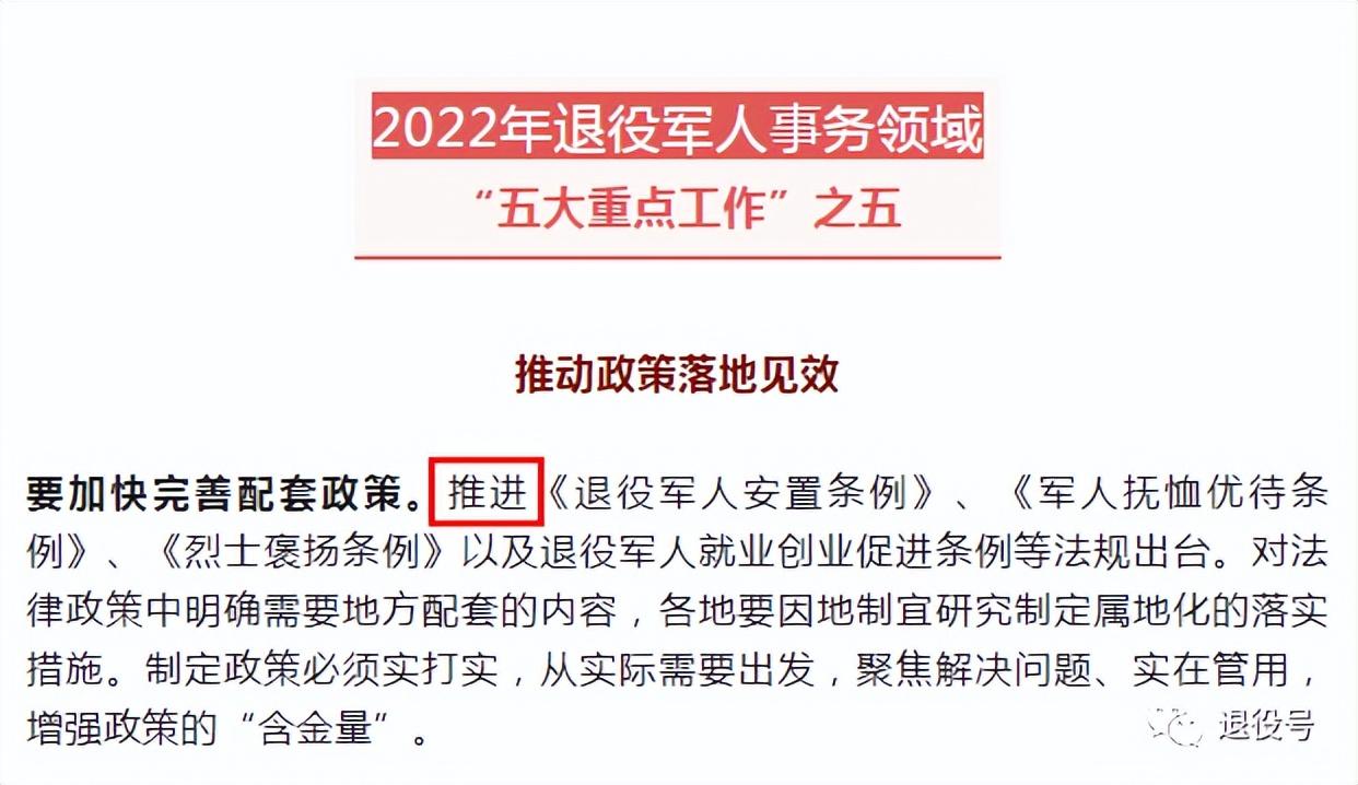 版权声明:我们致力于保护作者版权,注重分享,被刊用文章【军人安置条例(军人安置文件进度来了)】因无法核实真实出处,未能及时与作者取得联系,或有版权异议的,请联系管理员,我们会立即处理! 部分文章是来自自研大数据AI进行生成,内容摘自(百度百科,百度知道,头条百科,中国民法典,刑法,牛津词典,新华词典,汉语词典,国家院校,科普平台)等数据,内容仅供学习参考,不准确地方联系删除处理!;