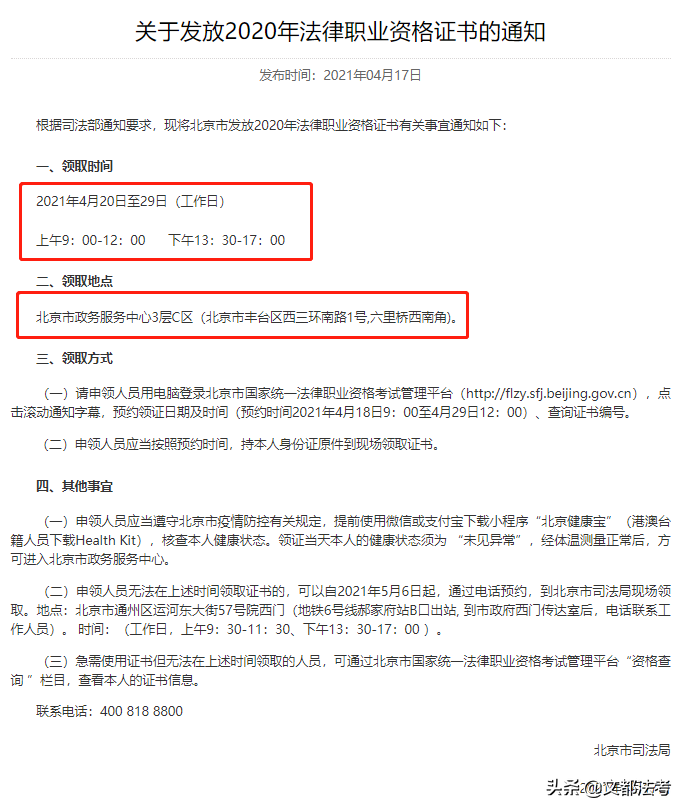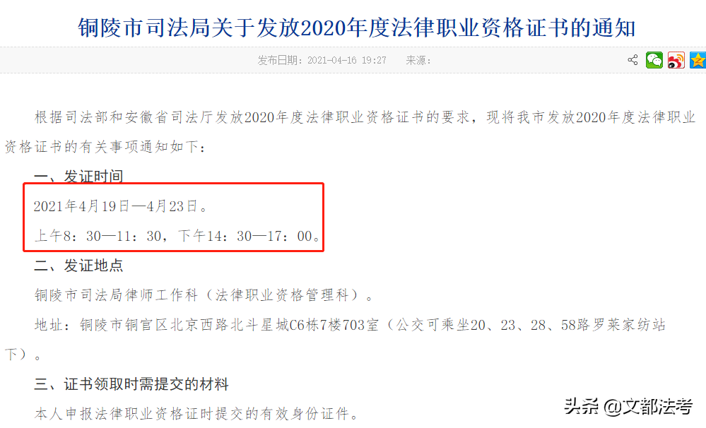 安徽省司法厅关于领取《法律职业资格证书》的公告