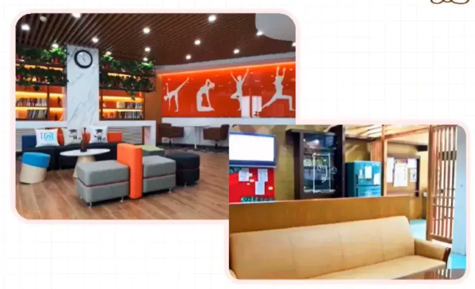 ,每两个居室共用一间客厅。同学们在共享客厅交流十分方便,而且每层楼的宿舍与宿舍之间,电话是免费的。再偷偷告诉你一个小秘密,这里的网速据说是全国第一哦