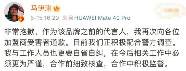2021年,马伊琍因代言某茶饮,卷入“套路加盟”合同诈骗案。