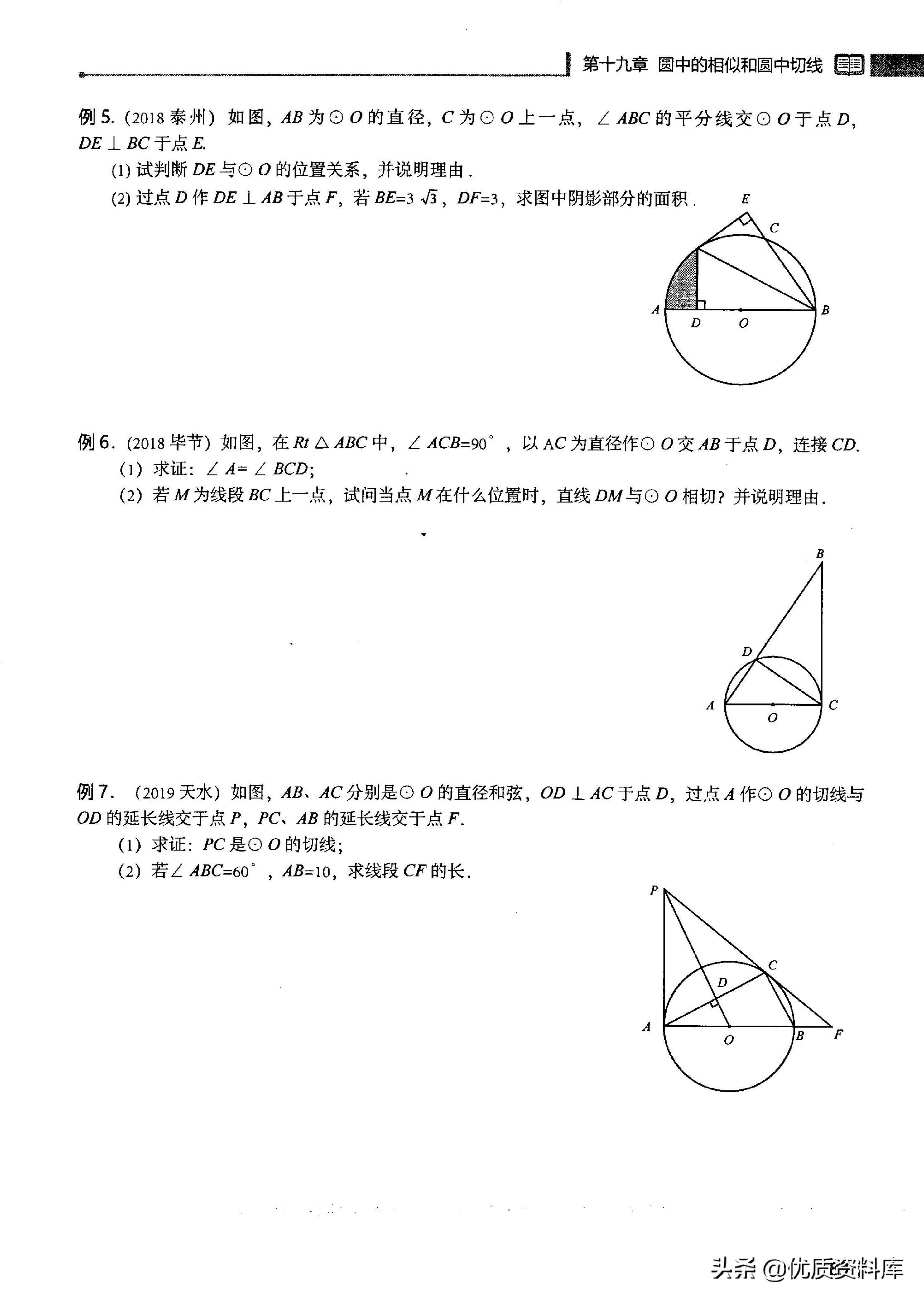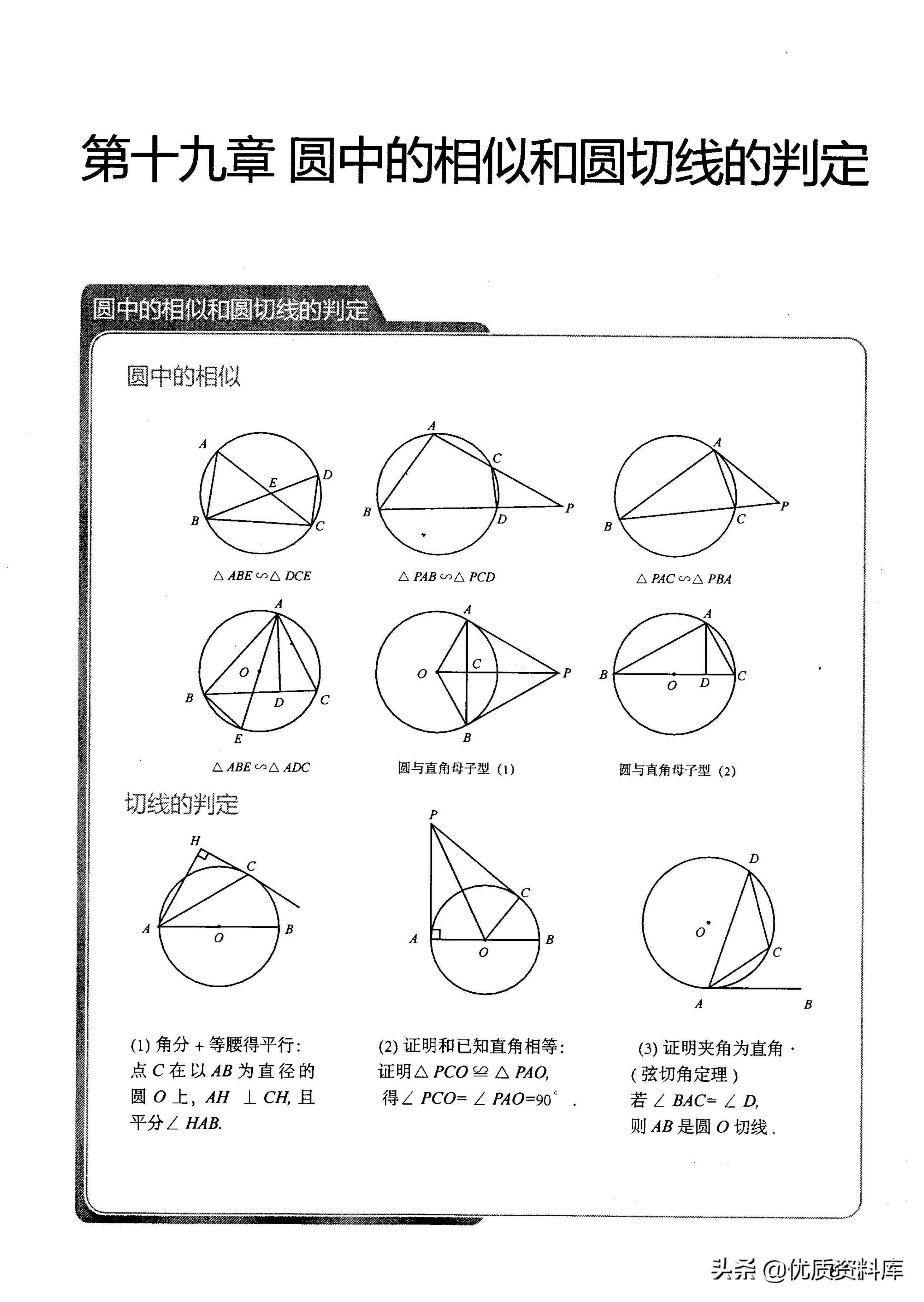 圆中的相似模型有以下6种切线的判定常考的3种例题