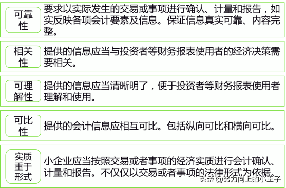 小企业会计信息质量要求是小企业财务报表中所提供会计信息质量的基本要求,是使财务报表所提供会计信息对投资者等使用者决策有用应具备的基本特征。