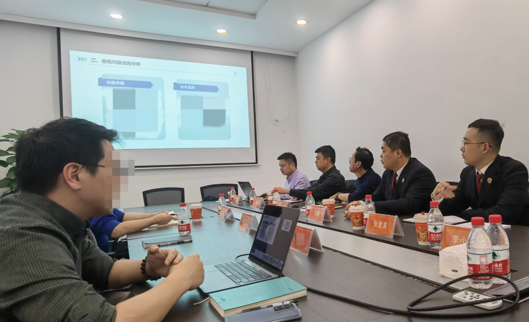 普陀区检察院检察官与第三方组织工作人员听取涉案企业中期整改情况汇报。