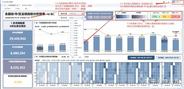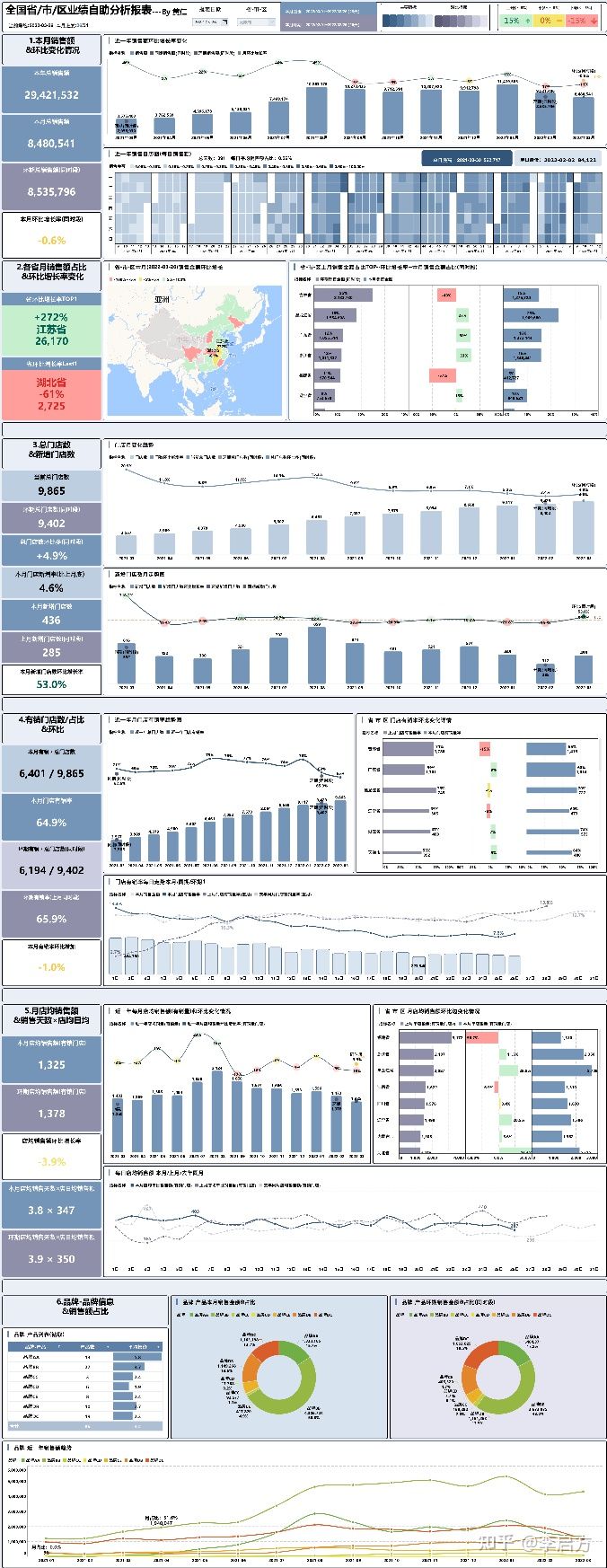 目的:当前,不少零售公司的门店都正在全国高速扩张中,急需一张完整企业经营数据分析报告,让业务人员能从中知道自己业务最近及过去的数据情况,同时,也让公司管理层快速了解业务情况及数据波动原因,得出解决方案。部分分析报告如下↓↓,数据分析及可视化报告制作工具是FineBI