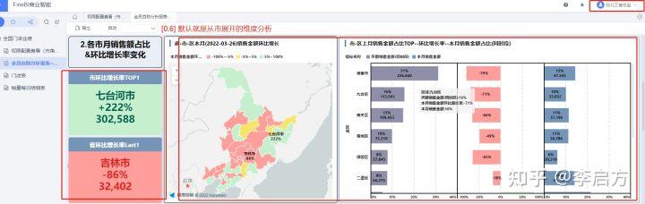 至此,其实全国老大在这份报表可以继续'筛选+联动+钻取'去分析'吉林省',且目前只用报表分析的2个版块,下面还有4个版块可以深入分析这2个省的问题。