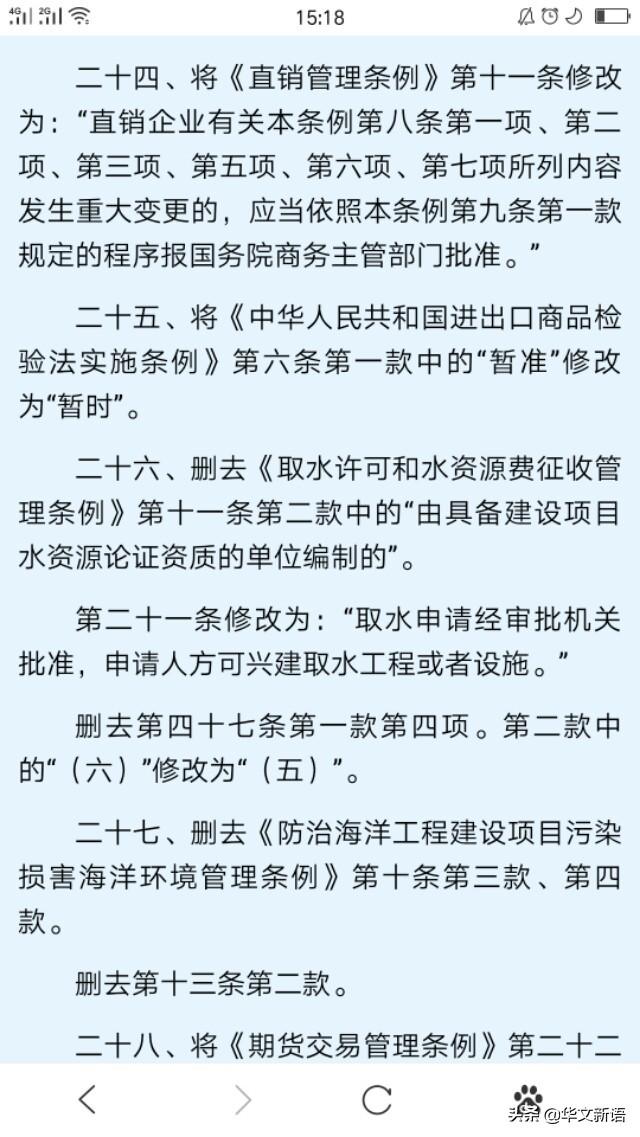 资料图:根据中央政府门户网站官网“司法”关于2017年3月1日“国务院关于修改和废止部分行政法规的决定(中华人民共和国国务院令第676号)”文件对《直销管理条例》通过第一次修订 华文新语 编辑