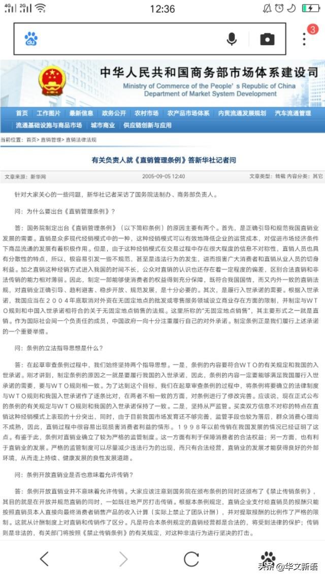 资料图:根据中华人民共和国商务部官网“直销管理”关于2005年9月5日“有关负责人就《直销管理条例》答新华社记者问” 华文新语 编辑