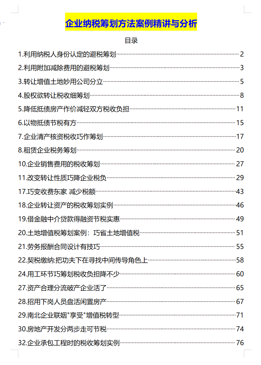 最近还熬了整整7天,把54个税务筹划案例整理汇总并讲解分析完成,今天就分享给大家。