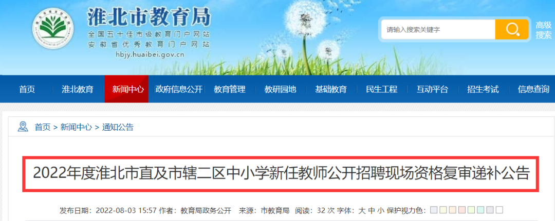 2022年度淮北市直及市辖二区中小学新任教师公开招聘现场资格复审递补人员
