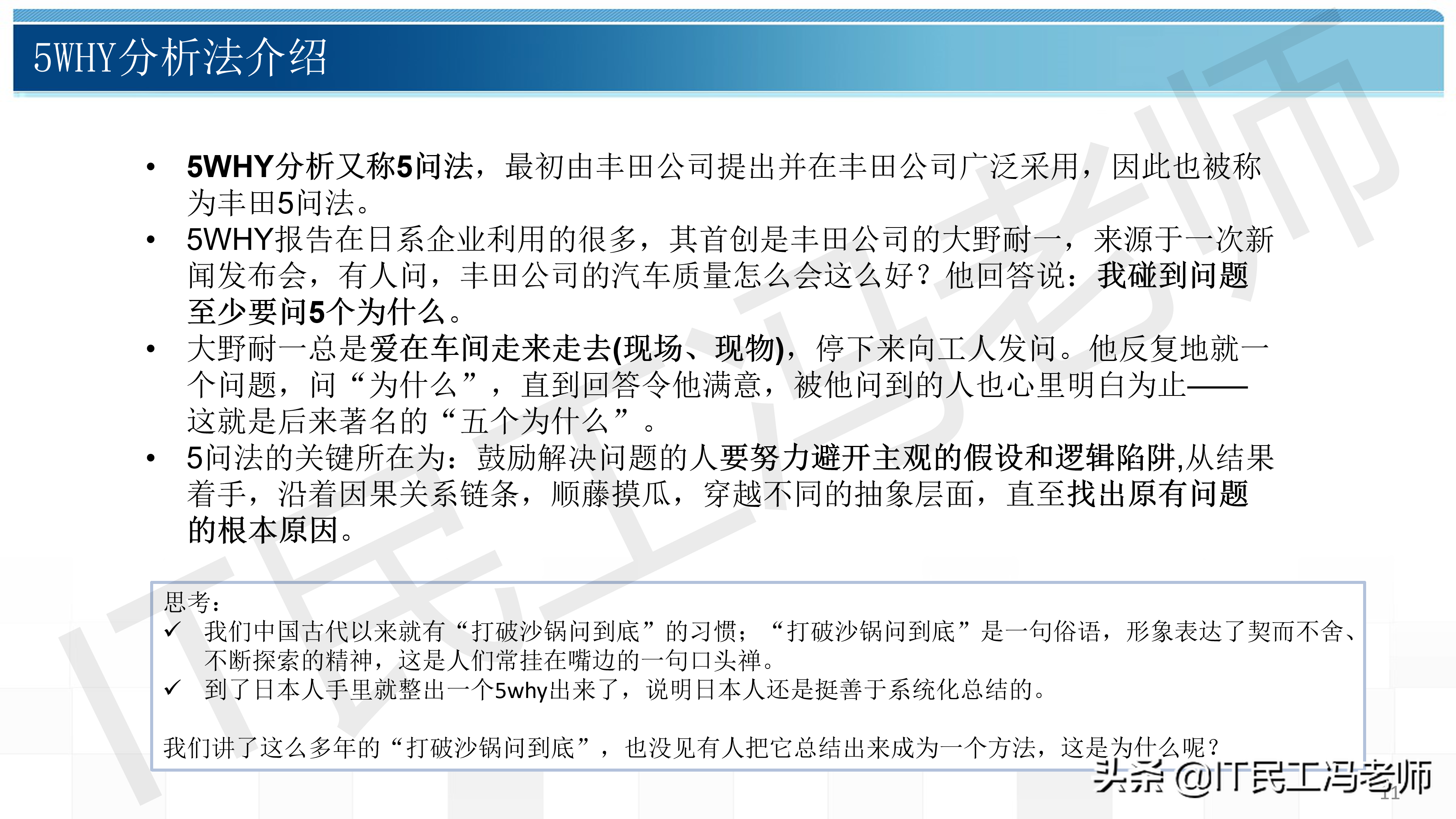 版权声明:我们致力于保护作者版权,注重分享,被刊用文章【5why分析案例(一文讲透原因分析)】因无法核实真实出处,未能及时与作者取得联系,或有版权异议的,请联系管理员,我们会立即处理! 部分文章是来自自研大数据AI进行生成,内容摘自(百度百科,百度知道,头条百科,中国民法典,刑法,牛津词典,新华词典,汉语词典,国家院校,科普平台)等数据,内容仅供学习参考,不准确地方联系删除处理!;