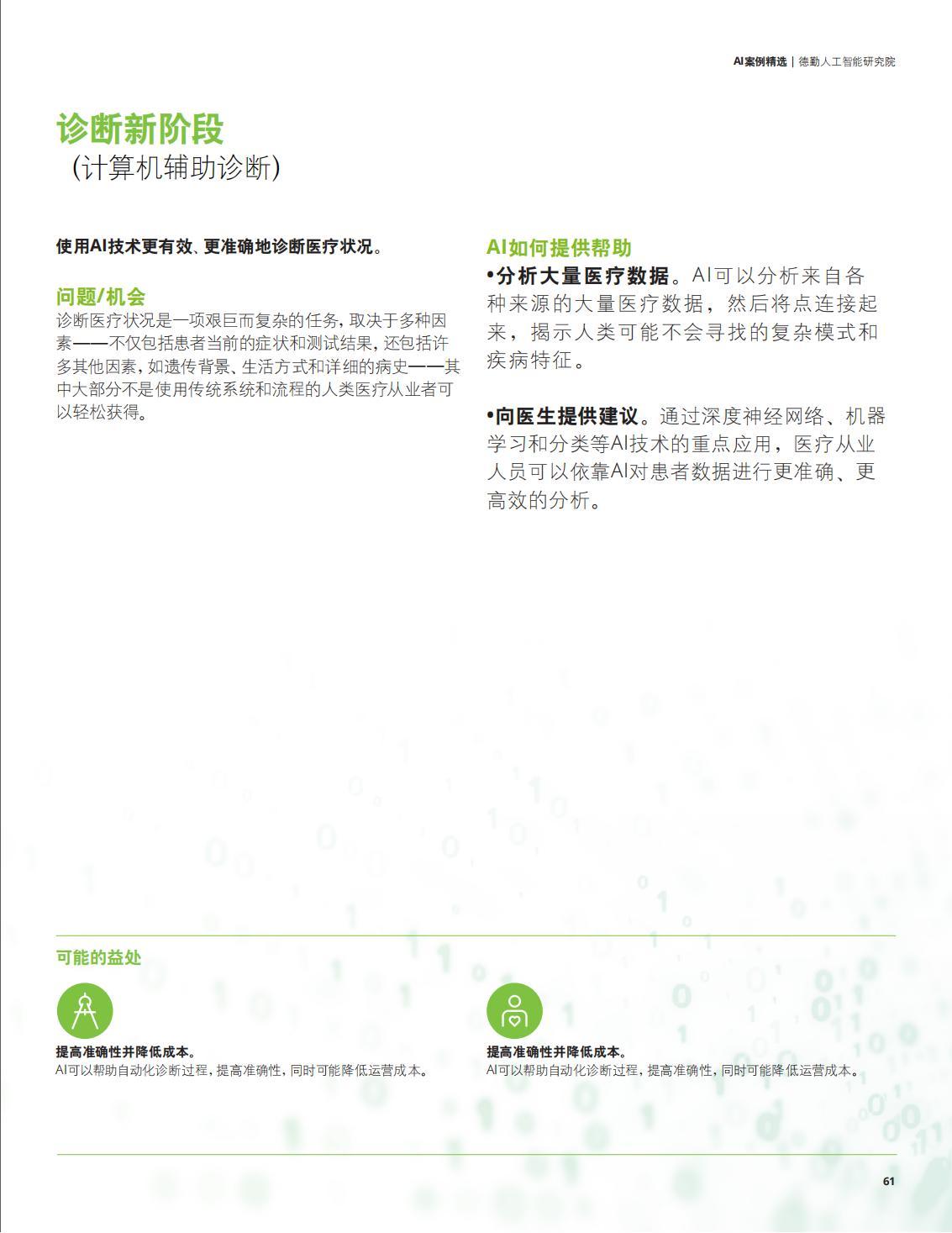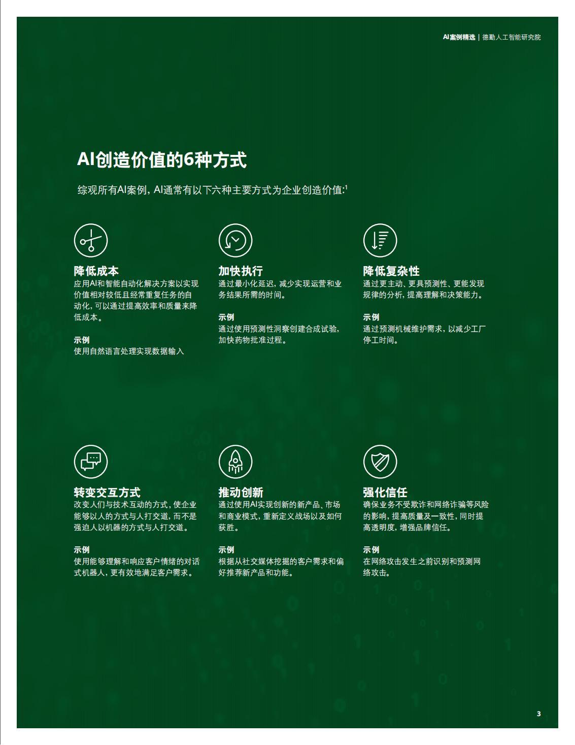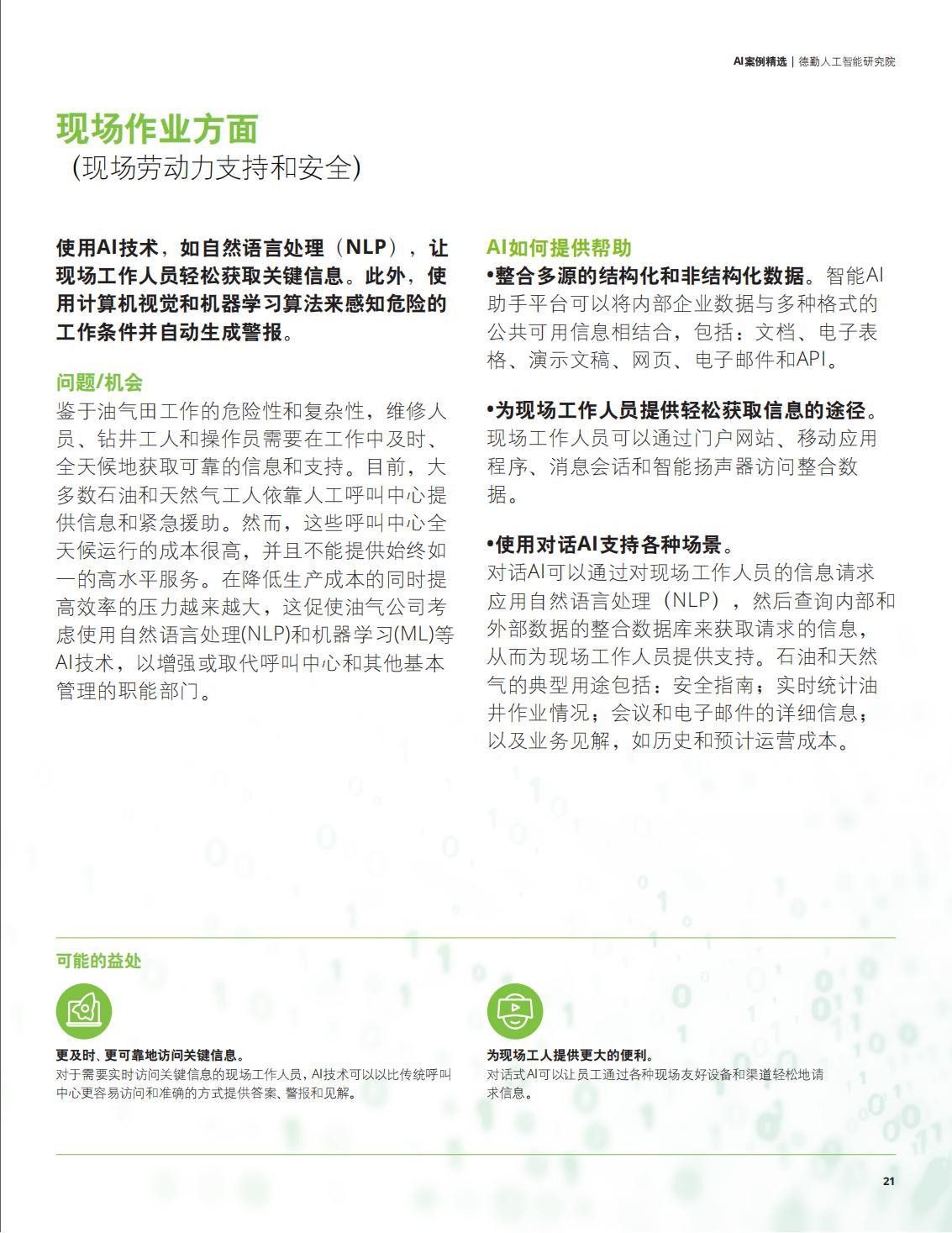 本文重点介绍了六大行业中数十个最引人注目、可应用的AI案例。每个案例都归纳了关键业务问题和机会、AI如何提供帮助以及可能的益处。本文还包括每个行业的几个新兴AI案例,这些案例预计将在对未来产生重大影响。