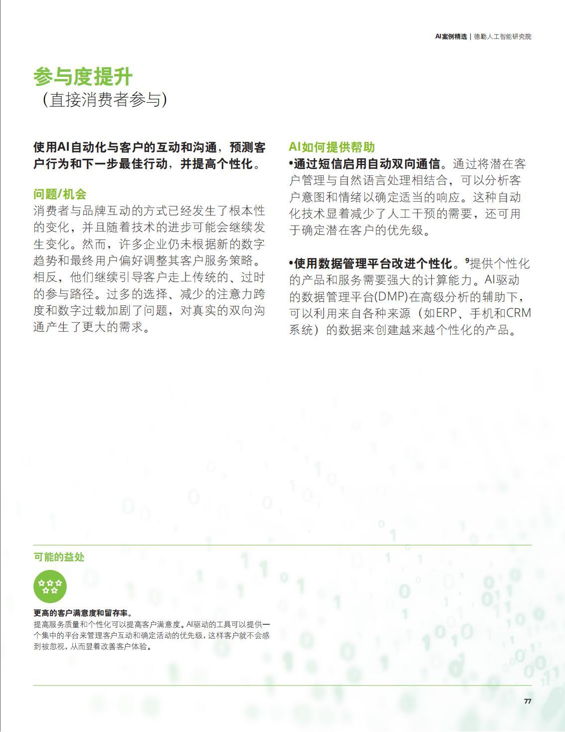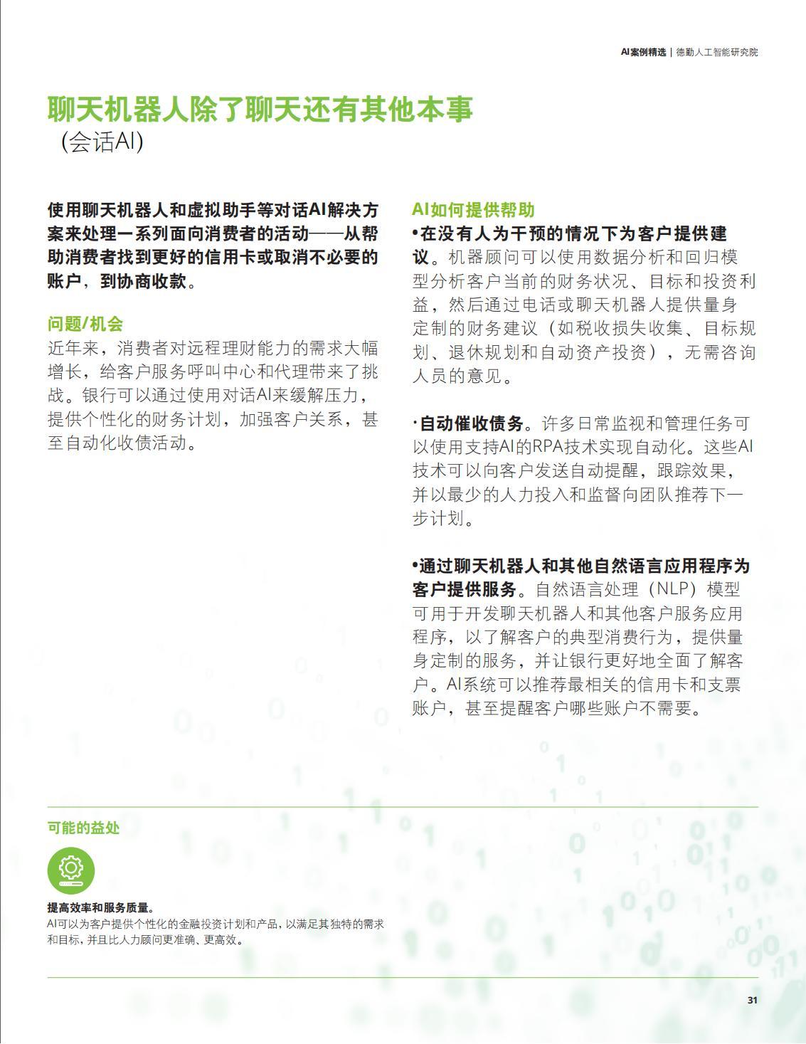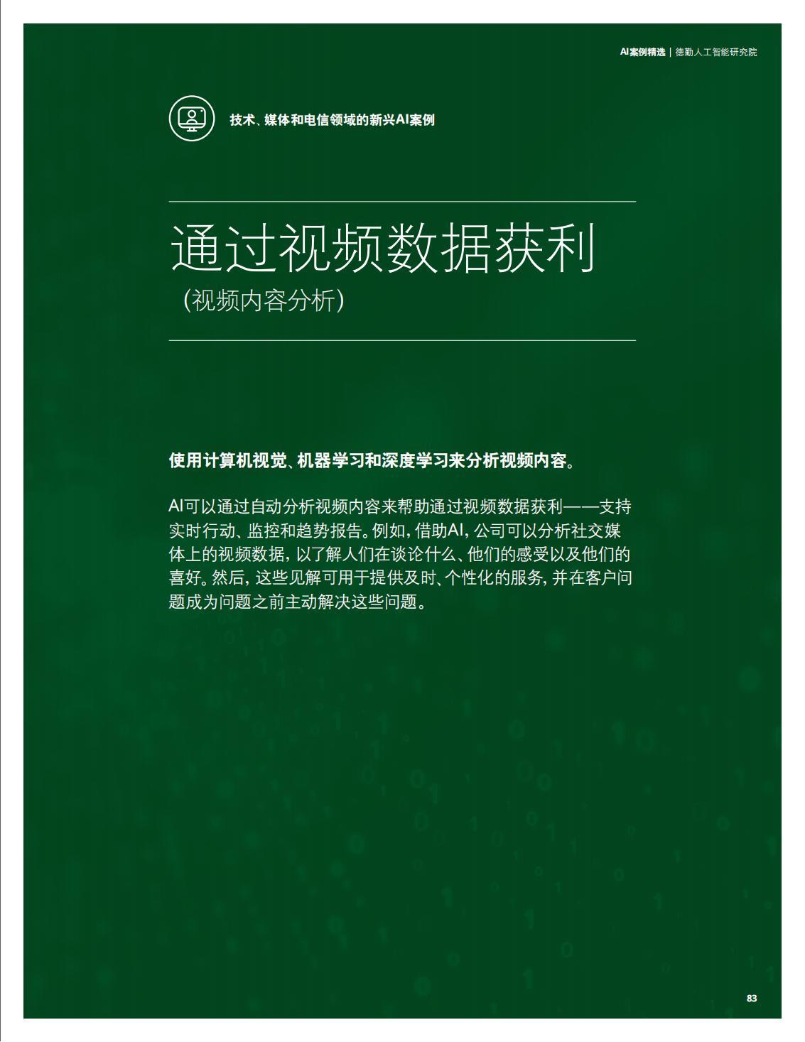 本文重点介绍了六大行业中数十个最引人注目、可应用的AI案例。每个案例都归纳了关键业务问题和机会、AI如何提供帮助以及可能的益处。本文还包括每个行业的几个新兴AI案例,这些案例预计将在对未来产生重大影响。