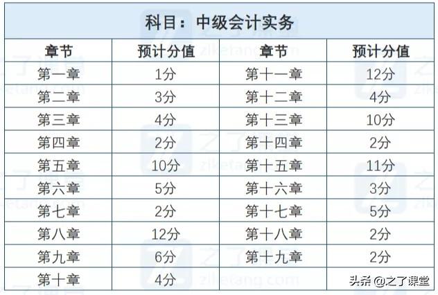 零基础考生备考2022中级会计考试,需要合理分配学习时间!各章节的分值占比能够直观体现该章节的重要程度,之了君为大家整理出各科目章节的预计分值,供复习时参考: